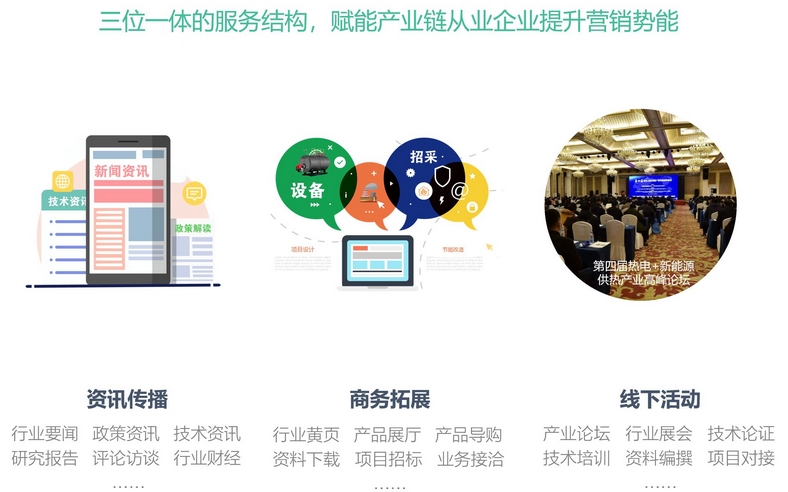 中能供熱網(wǎng)(前身為中國(guó)熱電產(chǎn)業(yè)網(wǎng),由中國(guó)節(jié)能協(xié)會(huì)熱電產(chǎn)業(yè)聯(lián)盟創(chuàng)建于2012年),專(zhuān)注于供熱行業(yè),涵蓋熱電、暖通、能源、節(jié)能、環(huán)保垂直領(lǐng)域的行業(yè)門(mén)戶(hù)平臺(tái),通過(guò)網(wǎng)站、手機(jī)版、APP、小程序、微信公眾號(hào)等實(shí)現(xiàn)多端一體的業(yè)務(wù)模式,為業(yè)內(nèi)人士及企業(yè)提供資訊傳播、會(huì)議論壇、產(chǎn)業(yè)培訓(xùn)、職業(yè)教育、電子商務(wù)等服務(wù)。