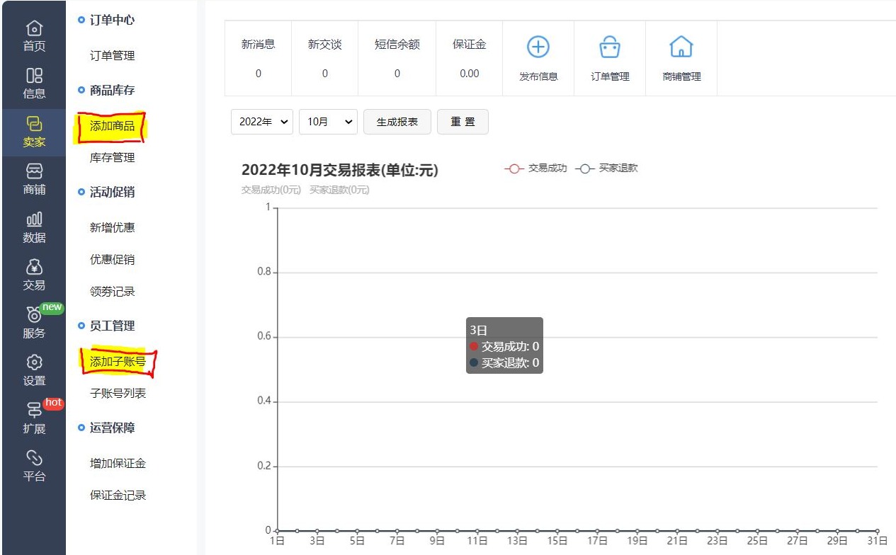 賣(mài)家后臺(tái) : 這里是注冊(cè)用戶發(fā)布自己的產(chǎn)品消息,添加產(chǎn)品的地方,還可以在這里添加后臺(tái)管理的員工賬號(hào)。