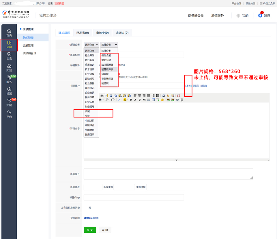 六、會議/展覽/培訓(xùn)單位允許在會展頻道發(fā)布會展信息,允許在新聞頻道發(fā)布會展動態(tài),發(fā)布時,請遵守發(fā)布要求。
