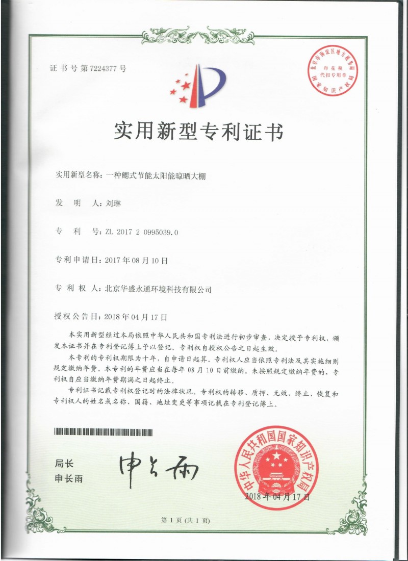 首頁(yè) > 榮譽(yù)資質(zhì) > 一種鰓式節(jié)能太陽(yáng)能晾曬大棚