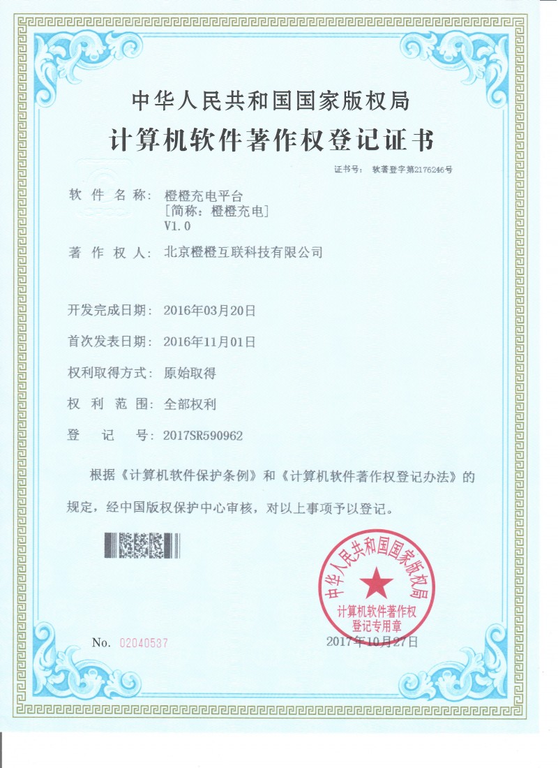 橙橙充電平臺計算機(jī)軟件著作權(quán)