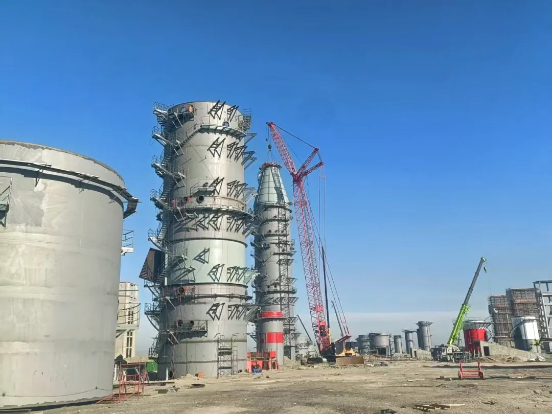 新疆項目現場,四座巨型脫硫塔同時施工的壯觀場景,是明晟環(huán)保集團技術實力和項目管理能力的集中展現。每座脫硫塔相當于30層樓的高度,在廣袤的戈壁中勾勒出震撼的天際線。