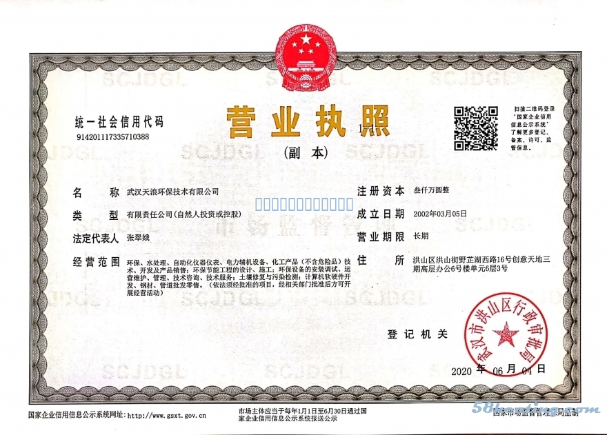 | 發(fā)證機(jī)構(gòu) | 武漢市洪山區(qū)行政審批局 | 發(fā)證時(shí)間 | 2020-06-04 |