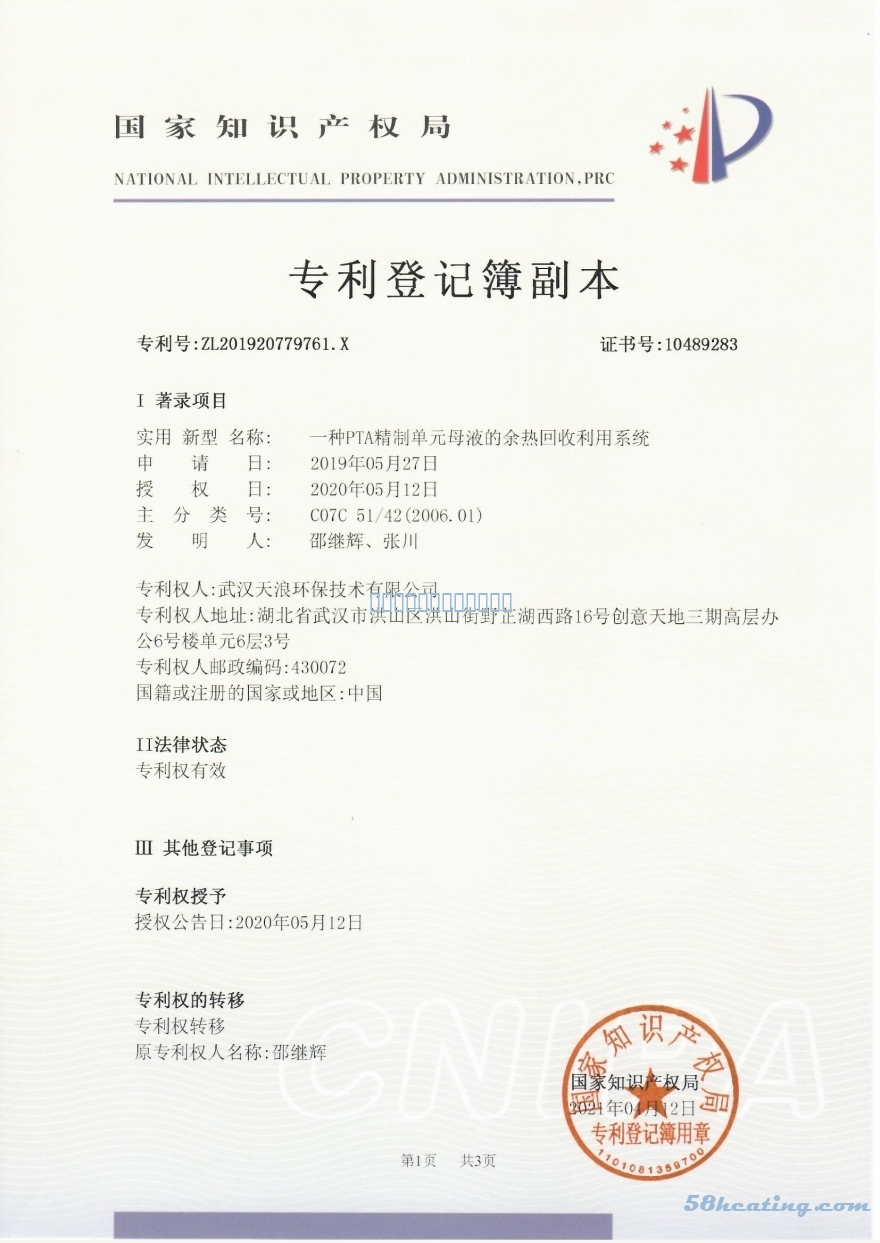 一種PTA精制單元母液的余熱回收利用系統(tǒng)