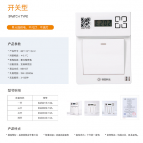 3、 開(kāi)關(guān)型采用單火線取電技術(shù),獨(dú)有的發(fā)明專利徹底解決閃燈和燒燈的問(wèn)題,包括一開(kāi)、二開(kāi)、三開(kāi)和四開(kāi)型號(hào),并支持雙控功能;