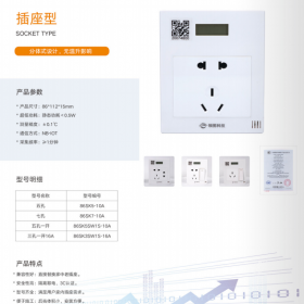 4、 插座型產(chǎn)品種類齊全,可以適應(yīng)各種安裝場(chǎng)合,插座型包括:五孔插座、七孔插座、三孔空調(diào)專用插座、五孔單開(kāi)插座等。